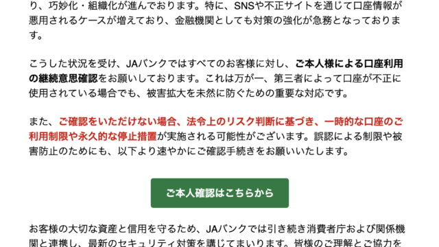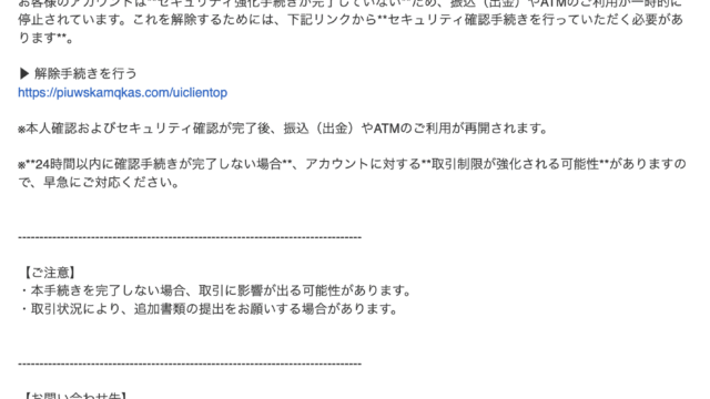フィッシングメール 【信用金庫】振込(出金)、ATMのご利用(出金)利用停止のお知らせ