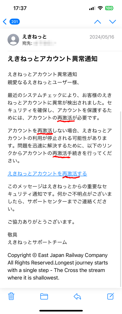 リンクはクリックせず、ゴミ箱に捨てましょう。
