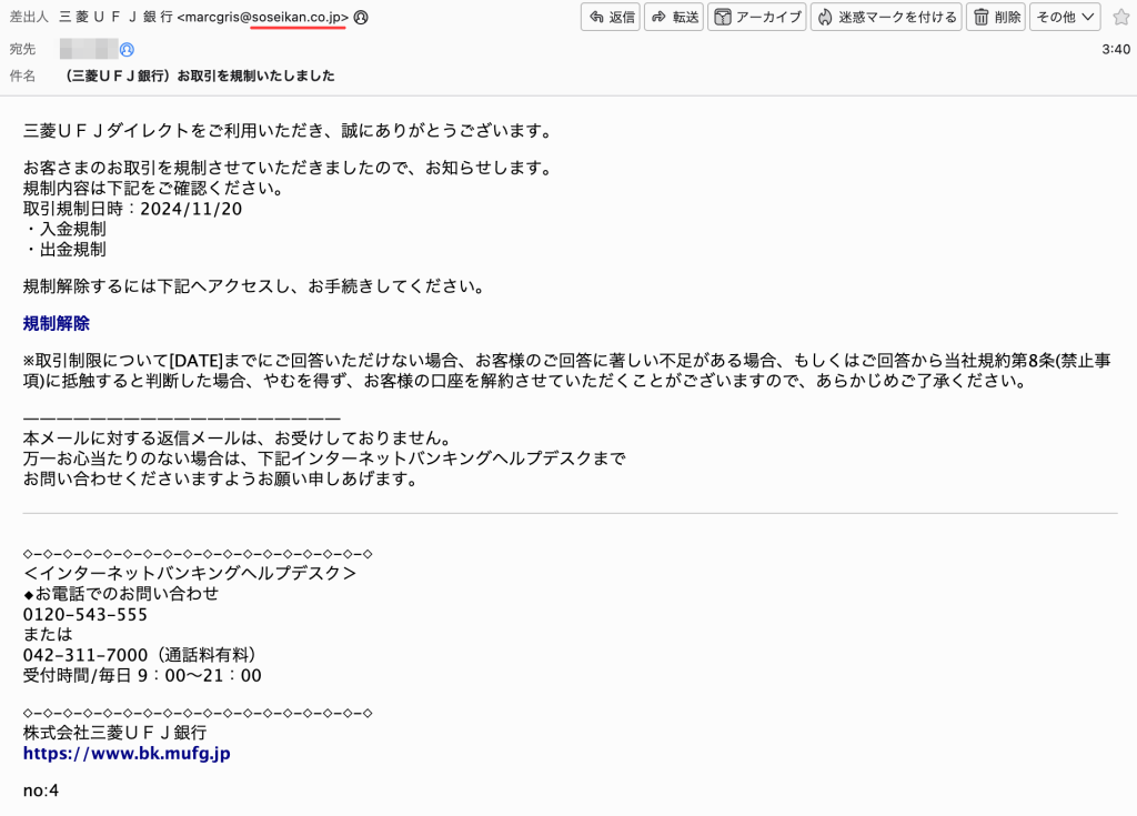 【重要】三菱UFJ銀行本人確認のお知らせ