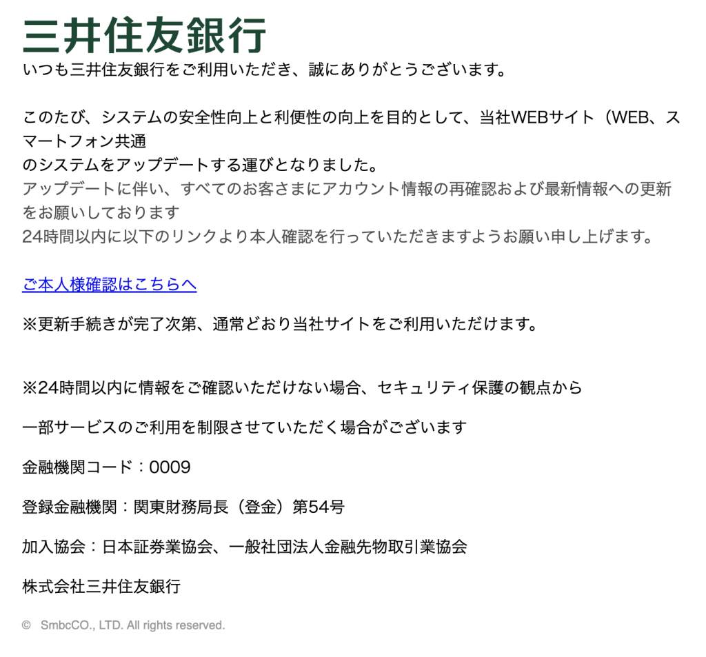 いつも三井住友銀行をご利用いただき、誠にありがとうございます。