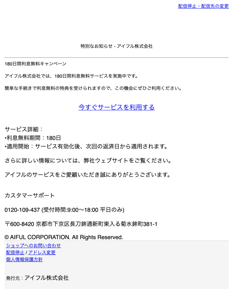 | 差出人 | アイフル株式会社 |
