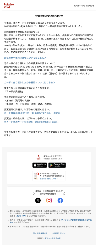 楽天カード株式会社 楽天カードからのお知らせ
