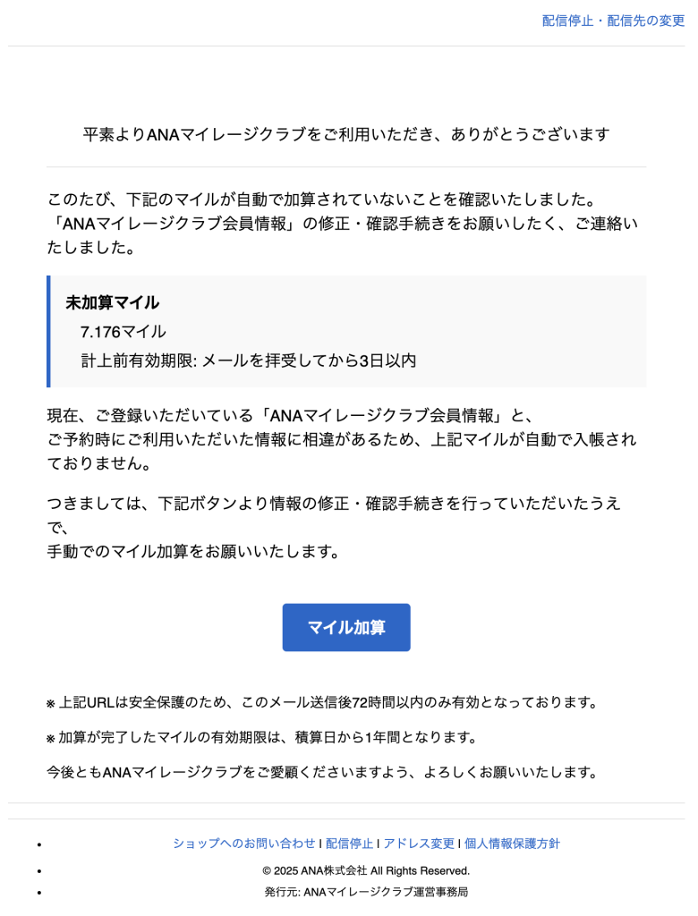 | 差出人 | ANAマイレージクラブ事務局 |