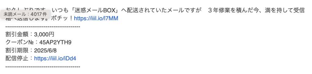 迷惑メールの本文テキスト
