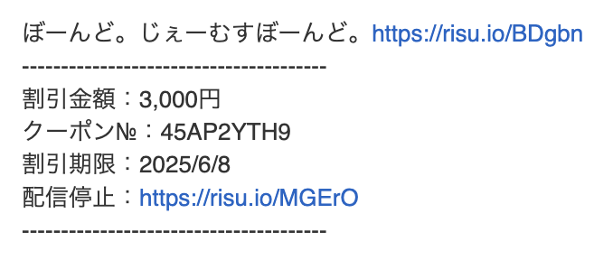 | メールタイプ | テキストメール |