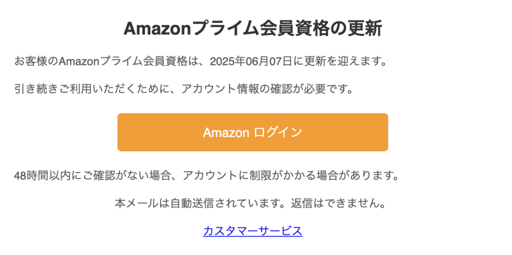 お客様のAmazonプライム会員資格は、2025年06月07日に更新を迎えます。