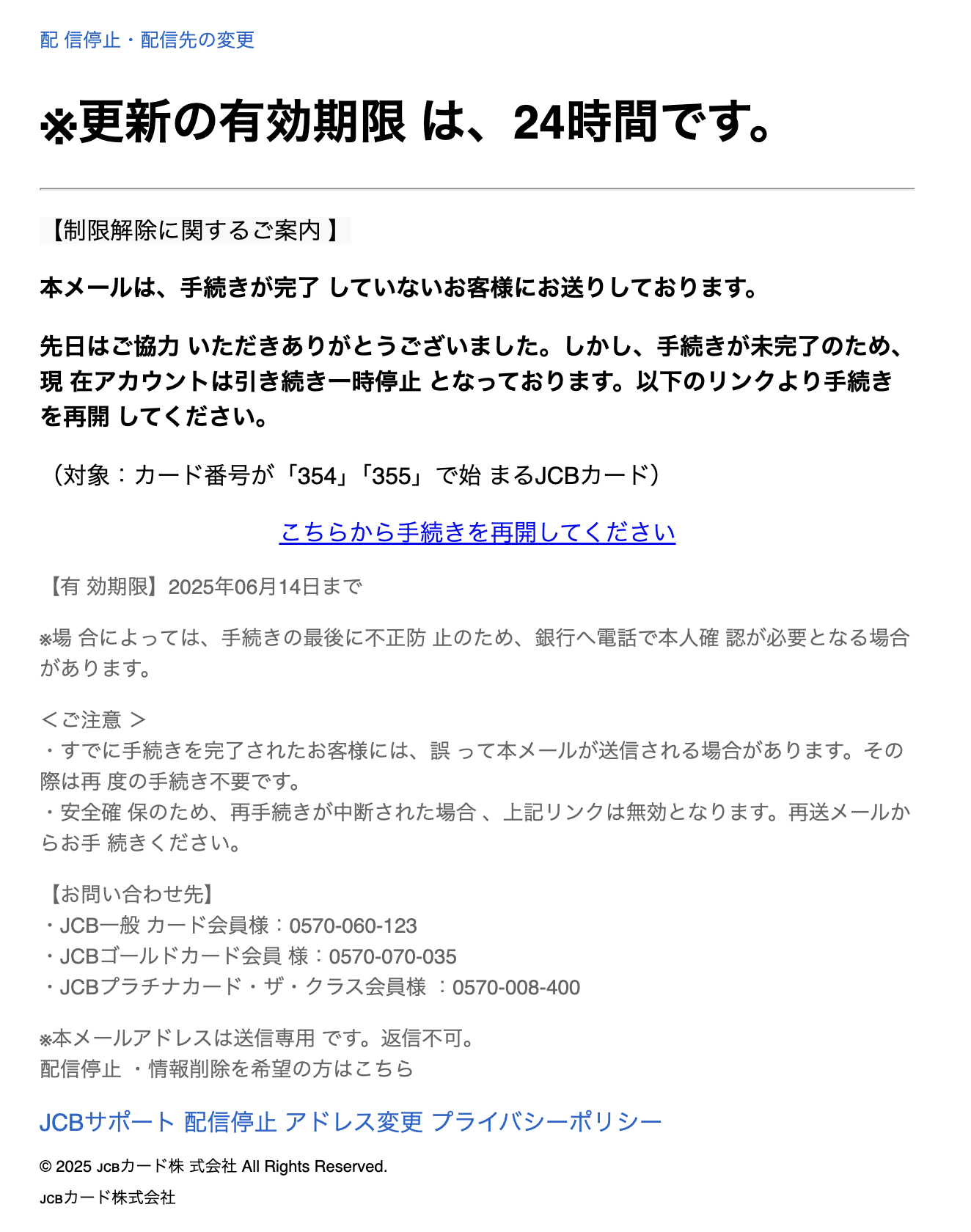 URLは絶対クリックせず、すぐにゴミ箱へ捨てましょう。