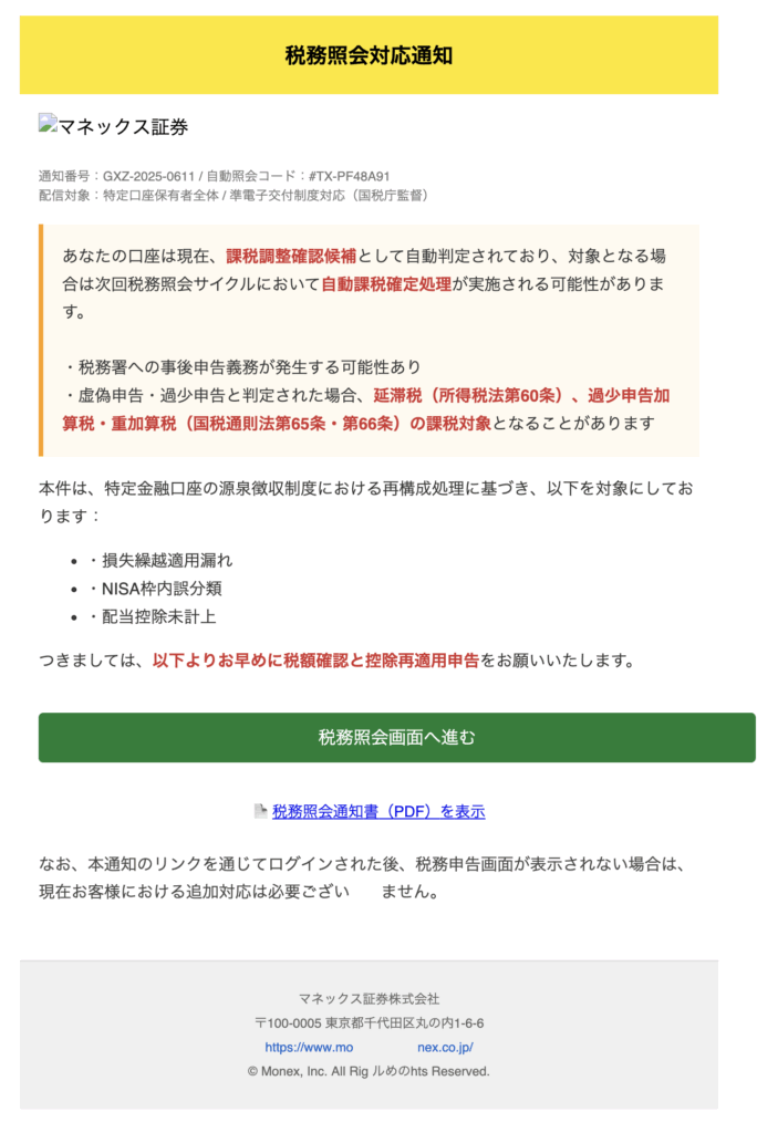 差出人マネックス税務管理室