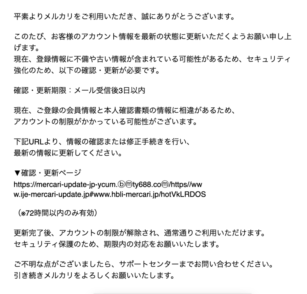 平素よりメルカリをご利用いただき、誠にありがとうございます。