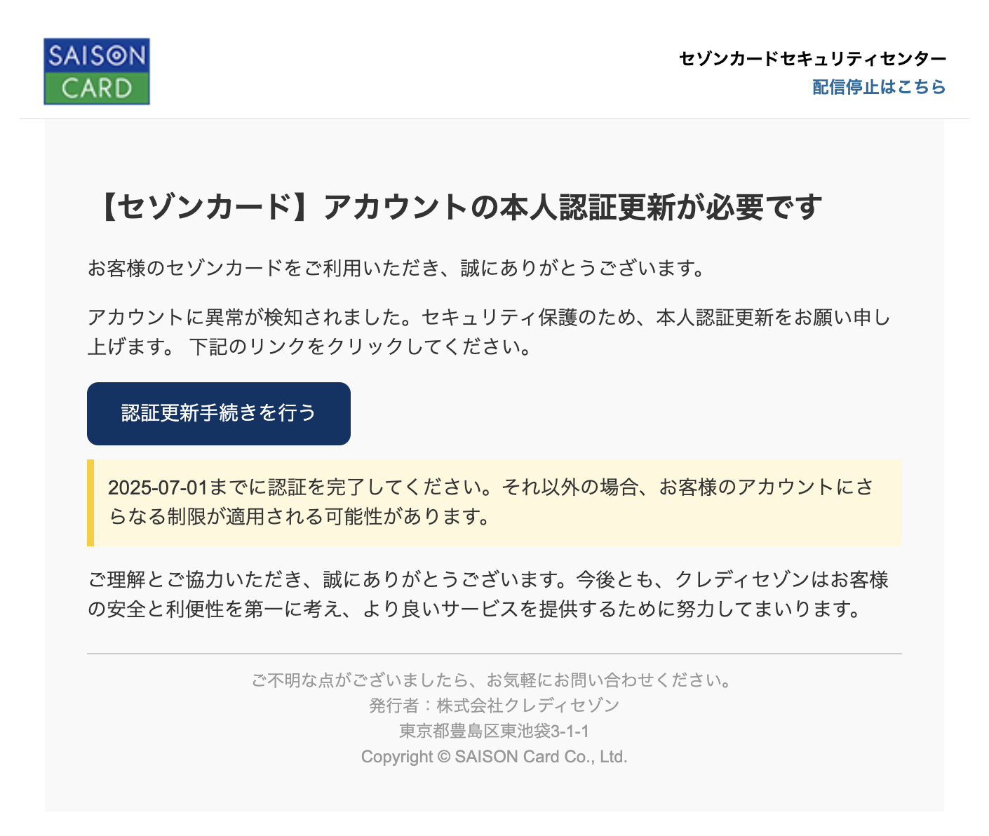 【セゾンカード】アカウントの本人認証更新が必要です