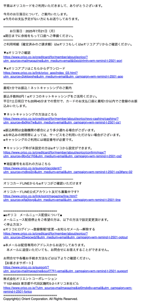 平素はオリコカードをご利用いただきまして、ありがとうございます。