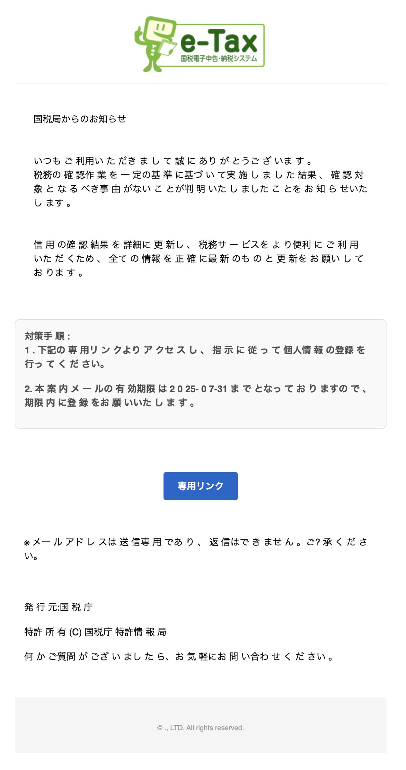 また、件名(本人確認情報の更新について)と本文内(ご本人確認情報ご提出のお願い)のつじつまが合っていません。