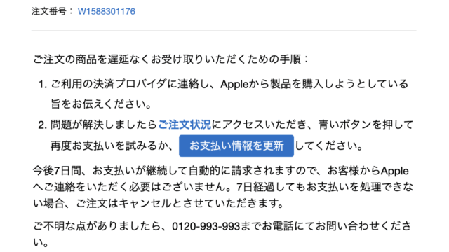 Appleよりご注文に関する重要なお知らせ