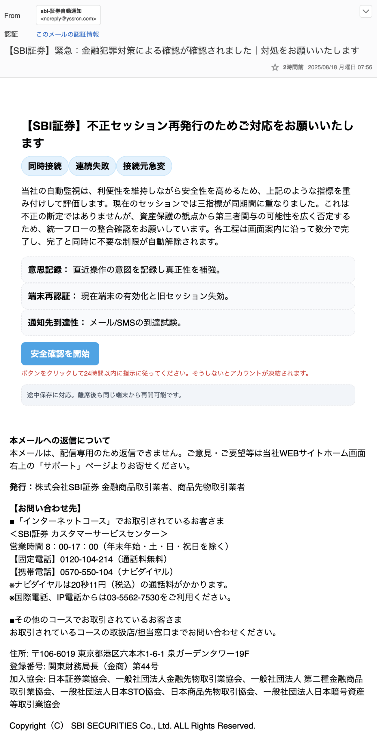 以下の専用ページよりアクセスのうえ、ご本人確認にご協力をお願いいたします。 画面の案内に従って、丁寧に必要項目をご入力ください。 所要時間は5〜10分程度ですので、お時間に余裕のある際にご対応いただけますと幸いです。 本確認は、お客様の大切なご資産と取引情報を保護するための重要な手続きです。