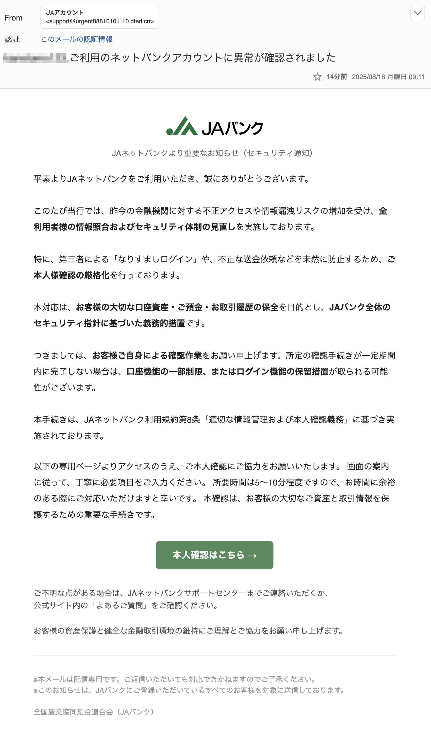 | 受信日 | 2025/08/18 月曜日 02:53 |