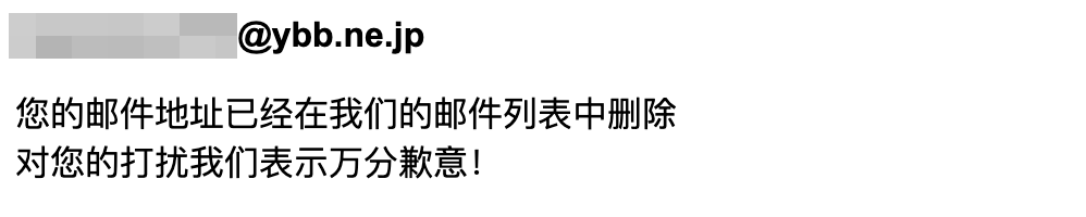 お客様のメールアドレスはメーリングリストから削除されました。ご不便をおかけして誠に申し訳ございません。