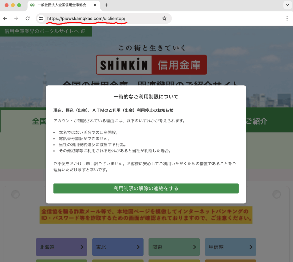 全国信用金庫協会ホームページに似せて作っていますが、URLが明らかに違います。