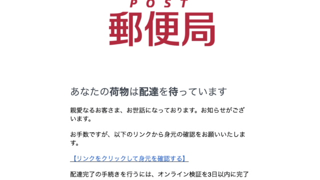 フィッシングメール お荷物のお届けが完了しました 「日本郵便(郵便局)」になりすました詐欺メール(フィッシングメール)です。配達完了の手続きを行うため、オンライン検証を促す旨を装っています。「あなたの荷物は配達を待っています」明らかに日本語が分からない外国人が翻訳ソフトを使って作ったと思わ... 2025.07.23 フィッシングメール日本郵便運送会社
